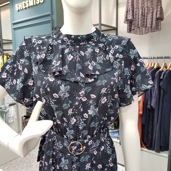 세련되고 우아한 꽃무늬패턴 쉬폰 원피스입니다 허리에 고무셔링이 있어 입으시면 편안한 벨티드 원피스입니다. 쉬폰 제천벨트가 있어 고급스러워요. 반팔소매이며 앞 프릴 포인트가 러블리한 롱쉬폰원피스~ 가을에는 트렌치와 함께 코디하셔도 굿~입니다.