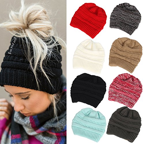 -. Title : OTGO Fashion Women Girls Ponytail Cap Warm Beanie Knitted Hat Messy High Bun Ponytail Beanie Hat