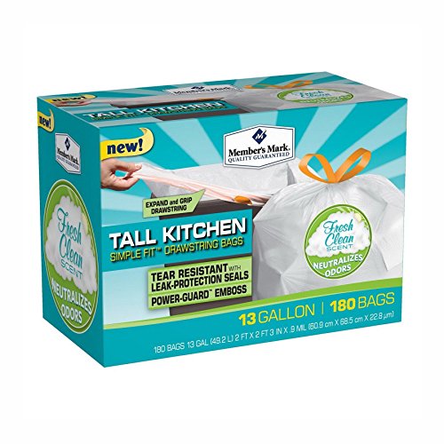 -. Title : Tall Kitchen Trash Bags 13 Gallon 180 Count Kitchen Tall texture leak-protection seals Fresh Clean Fresh scent Scented Trash Can Liner