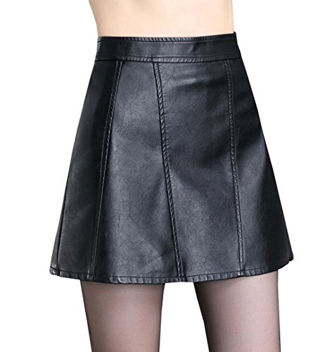 -. Title : DuWei (ドゥウェイ) レディース ファッション ハイウエスト PUスカート スリム 前ジップ レザー スカート 黒Aライン 着痩せ お洒落 ミニスカート