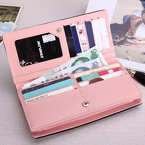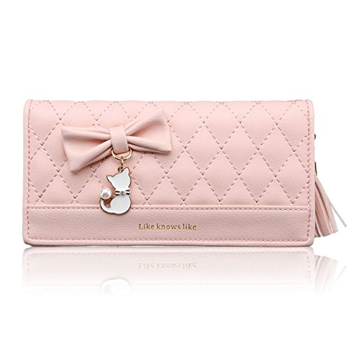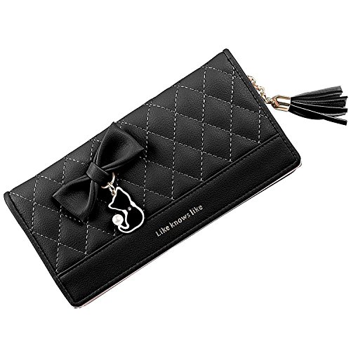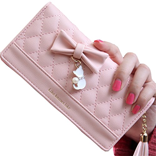 -. Feature : High quality faux leather,sweety bow knot with cat pattern,never out of style / The wallet have 11 card slots,1 photo window,2 cash holders,2 phone or coin pockets.You can carry the card,phone 6 plus,bills, change,credit cards,coin conveniently / Size info: 7.6 in(L)x1.0in (W)x3.5 in (H), / Fold-over design closes with snap-button closure, easy open and use / Application:as a clutch,suitable for many occassions,parties,shopping,office,also an ideal gift for somebody