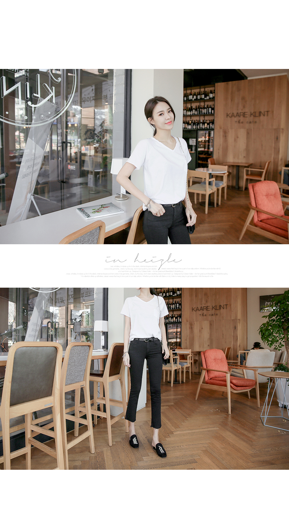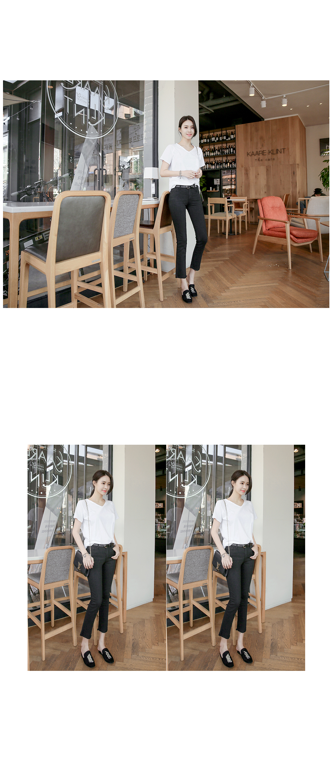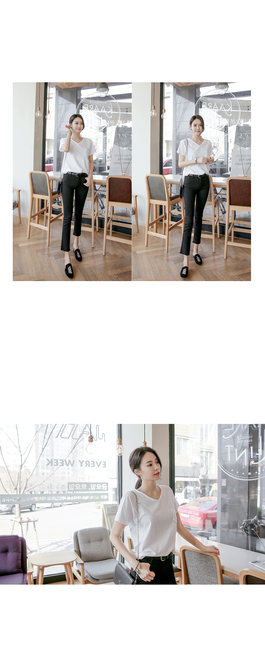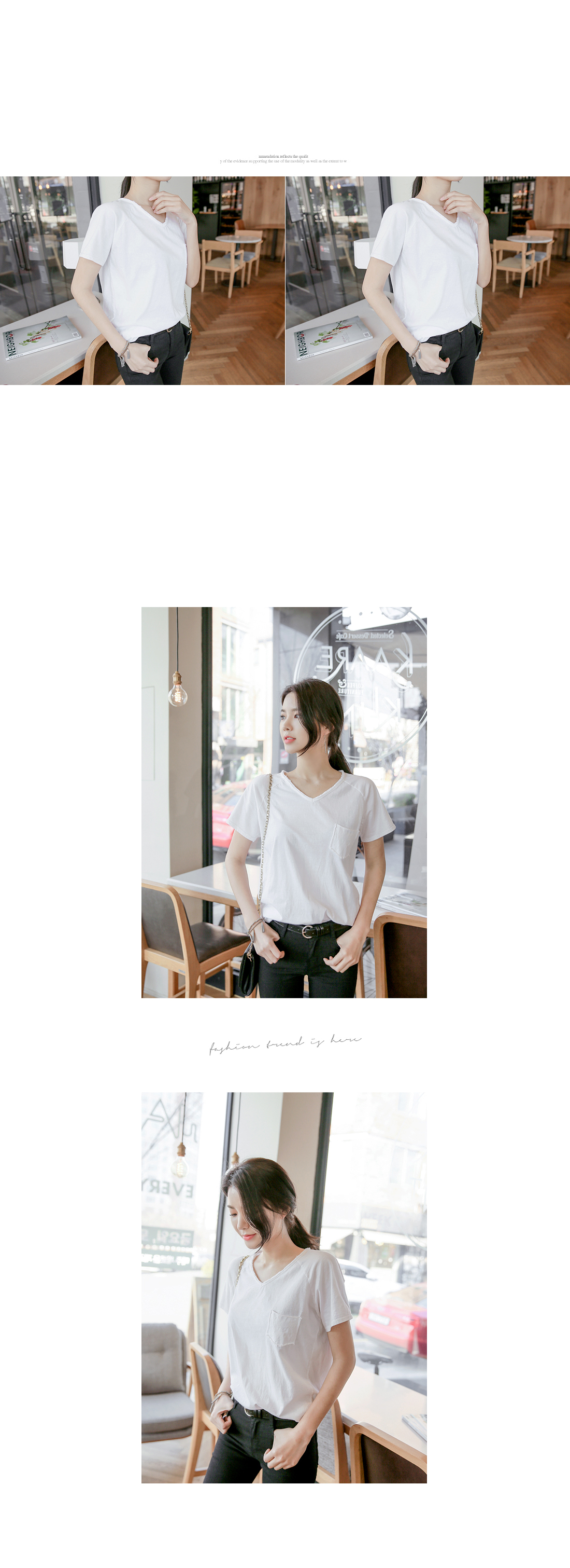 군더더기없이 깔끔하고 심플한디자인의 브이넥 티셔츠아이템을 소개해드려요~^^적당한 두께감과 길이감으로 다양한 아이템들과 부담없이 데일리하게 레이어드룩을 연출할 수 있답니다~빈티지한 브이넥크라인으로단품으로 착용해도 스타일리시한분위기의 코디룩을 완성할 수 있어요~다양한 아이템들과 스타일링을 연출할 수 있는 베이직한 티셔츠 아이템이예요~
