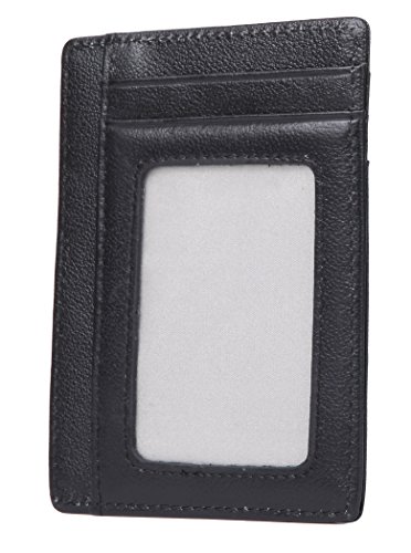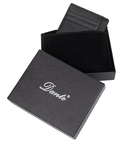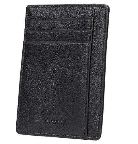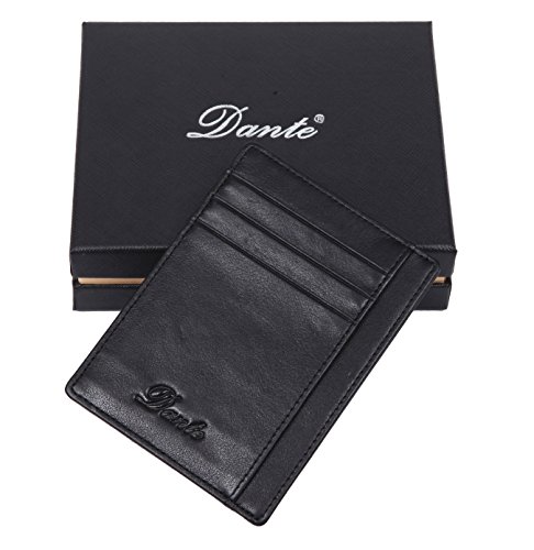Dante RFID Blocking Front Pocket Leather Slim Wallet for Man, Mini Slim Card Holder (Black)