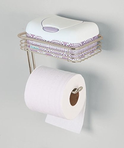 TISSUE HOLDER WITH BUILT-IN SHELF Tissue holder accommodates one roll of toilet paper and provides a shelf for extra storage of toiletry necessities, a cell phone or reading materials.
