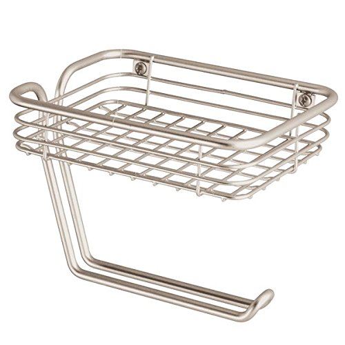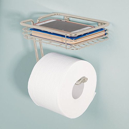 InterDesign Classico Wall Mount Toilet Tissue Holder with Shelf, Satin