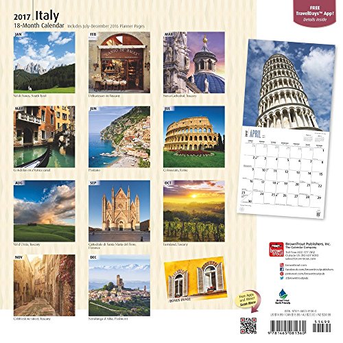 -. Binding : Office Product -. Brand : 2017 Calendars -. EAN : 0709257561561 -. Feature : 2017 Calendar featuring beautiful full color photographed images for every month of the year. / Includes Holidays and Observances / Perfect for office spaces, bedrooms, classrooms and more! / Makes a great gift for friends and family! / Keep your appointments and Birthdays organized in one place! -. Label : Brown Trout -. Manufacturer : Brown Trout -. MPN : 81360 -. PackageQuantity : 1 -. PartNumber : 81360 -. ProductGroup : Office Product -. ProductTypeName : OFFICE_PRODUCTS -. Publisher : Brown Trout -. Studio : Brown Trout -. Title : 2017 Monthly Wall Calendar - Italy -. UPC : 715658180089