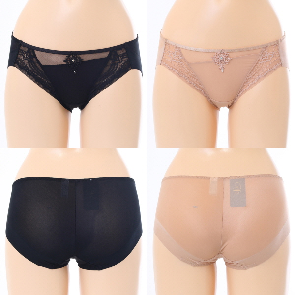 망원단을 사용하여 런닝형 스타일로 가슴 상변을 가볍게 덮어주어 착용시 안정감을 느낄 수 있습니다