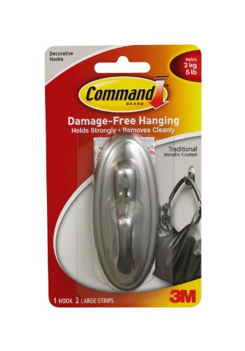 Command Traditional Large Plastic Hooks, Brushed Nickel, 2-Hook