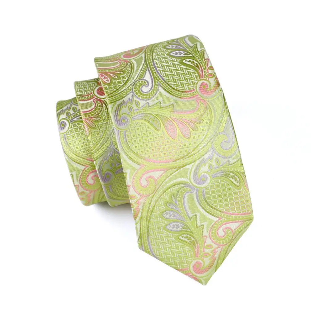 | [해외]DH-411 남성 실크 넥타이 녹색 페이즐리 넥타이 100% 실크 자카드 남성 넥타이 비즈니스 웨딩 파티 무료 배송 |