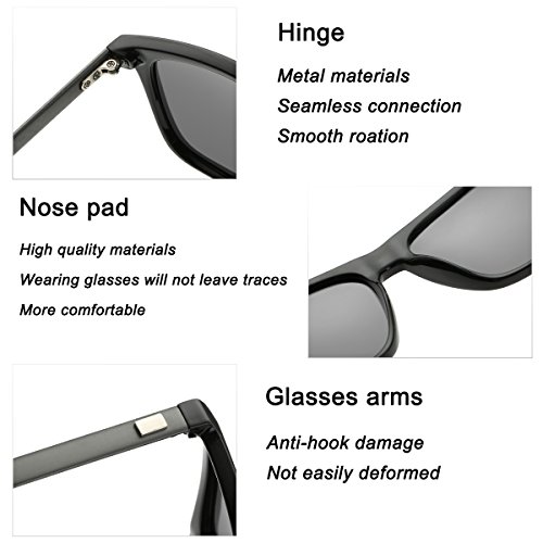 -. Feature : POLARIZED HD VISION AVIATOR SUNGLASSES - 100% UV 400 Proteccion. Polarized sunglasses reduce glare reflected off of roads, bodies of water, snow, and other horizontal surfaces, cut glare and haze so your eyes are more comfortable and you can see better. / GRATE MATERIAL MADE HIGH QUALITY FRAME - The polarized sunglasses you receive made with only the highest quality material sare fully CE certified .The Wrap Around Design make you look diffrent on the crowd. Suitable for both men and women . / FLEXIBLE AND DURABLE GRATE WEARING EXPERIENCE - Our polarized sunglasses not noly have the fashionable Wayfarer style but also have the Humanized Design. Elasticity frame and Silicone nose pad give you different wearing feelings. / NIGHT VIEW LENS PROTECTE YOU EYES FROM GLARE - The polarized night vision sunglasses help you have a high clarity vision in front of you to see clearly and more comfortably. / LIFE TIME GUARANTEE ON AMAZON. 30-Day Money Back Guarantee. 24-hour customer services before purchase and after sales. 2-Year Warranty.If you have any issue,please email to us or Facebook we are here to help you!