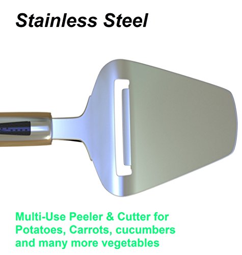 - MULTI-USE PEELER: It can also be used to peel soft fruits and vegetables including carrots, cucumbers, potatoes and much more. The sharp cutting blade allows you to slice from wafer thin cheese slices to chunky cheese slices up to ¼” thick.