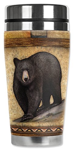 Mugzie 1219-MAX "Black Bear" Stainless Steel Travel Mug with Insulated Wetsuit Cover, 20 oz, Black