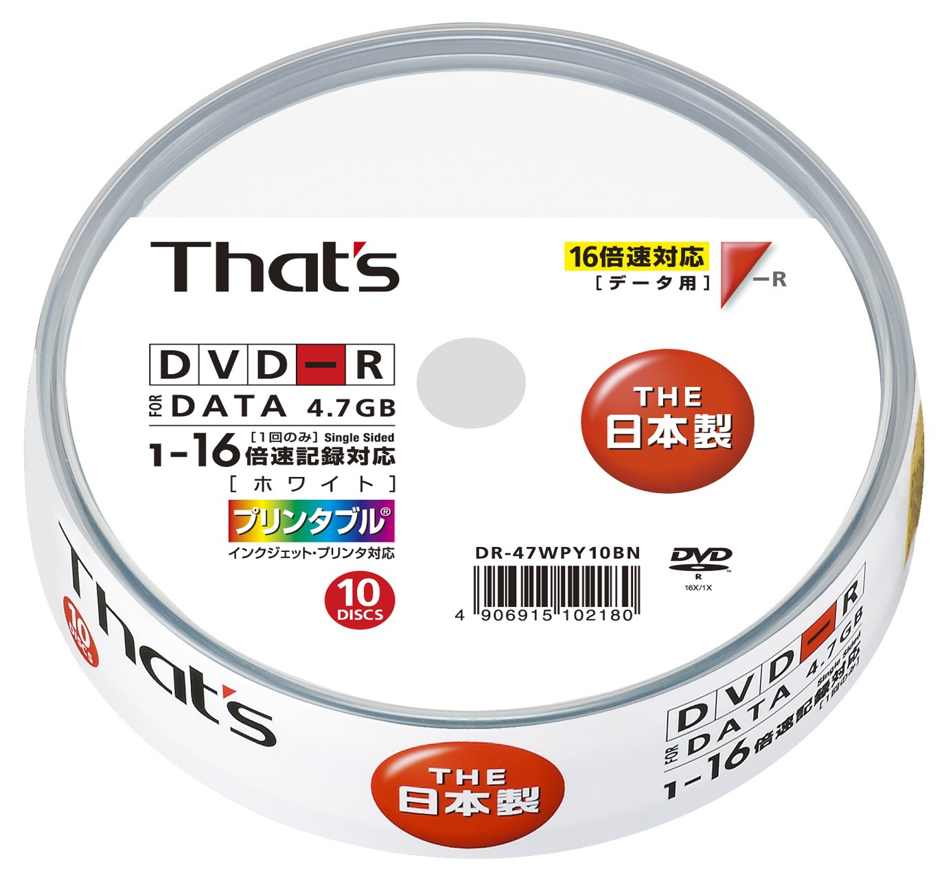 Taiyo Yuden made That s DVD-R data for 16x 4.7GB printable 10 sheets spindle case enter DR-47WPY10BN