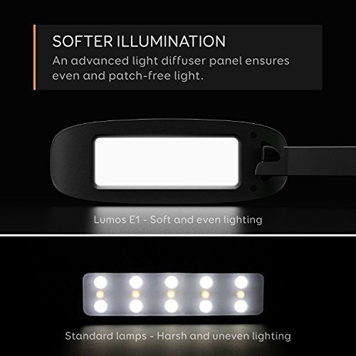 - Eye-Protection Technology: Built with a light diffuser and guiding plate that prevent light flicker and harmful glare. Lumos E1 protects against eye fatigue, strain and irritation.