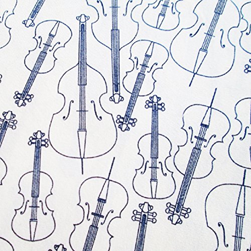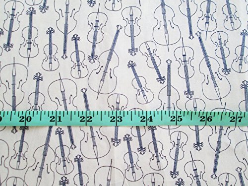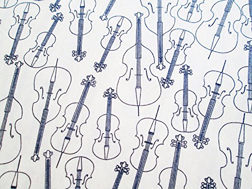 Music Instruments with Dark Blue Violin Symphony on White 36 by 36-Inch Wide (1 Yard) (CT696)