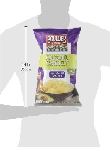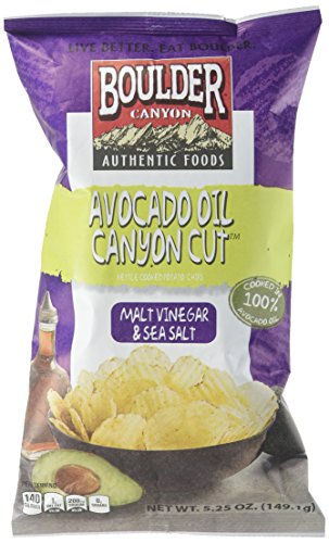 Boulder Canyon Avocado Oil Canyon Cut Kettle Cooked Potato Chips, Malt Vinegar and Sea Salt, 5.25 Ounce (Pack of 12)