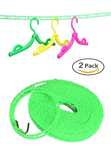 Warmtree Outdoor Nylon Windproof Clothesline Fence Non-slip Drying Clothes Hanger Rope,16.4 Foot,Pack of 2,Random Color