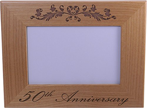 50th Anniversary - 4x6 Inch Wood Picture Frame - Great Anniversary gift for friends, parents and family