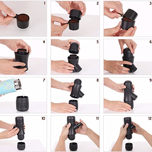 Portable Hand Held: Smallest, lightest and most versatile pressure coffee maker, be sure to enjoy a delicious espresso anywhere, anytime. The cup is integrated making it perfect for espresso on the go.