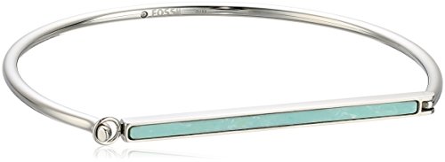 Love the way you dress with this stylish bracelet from Fossil®. Bar charm with semi-precious stone detail. Gold or silver-tone finishes. Hook closure. Imported. Measurements: Width: 1⁄8 in Diameter/Length: 2 2⁄5 in Weight: 0.2 oz