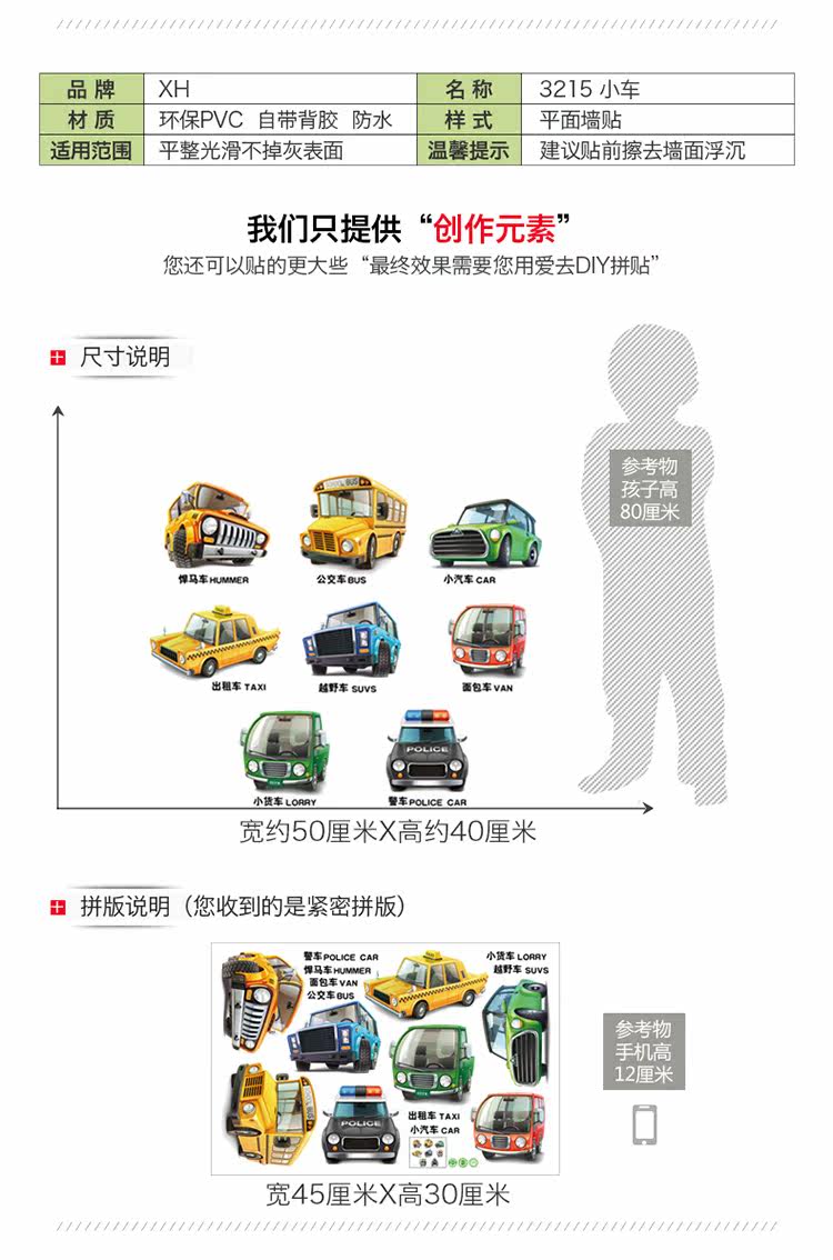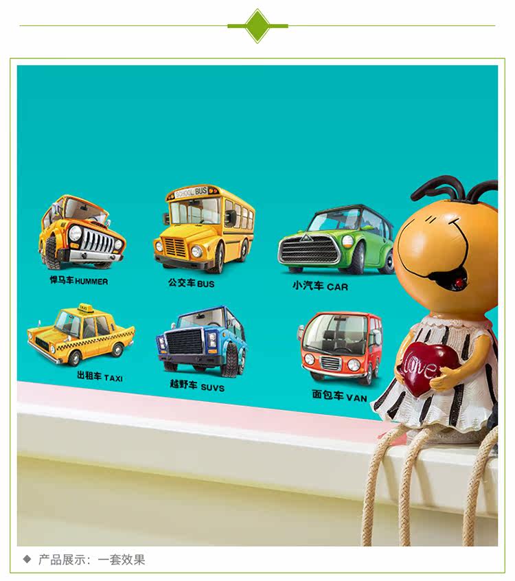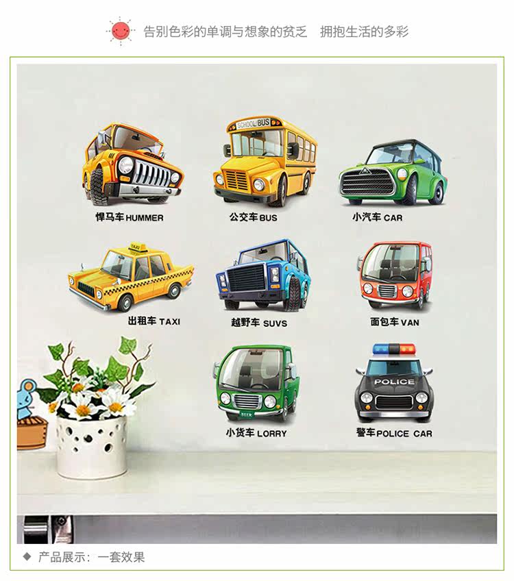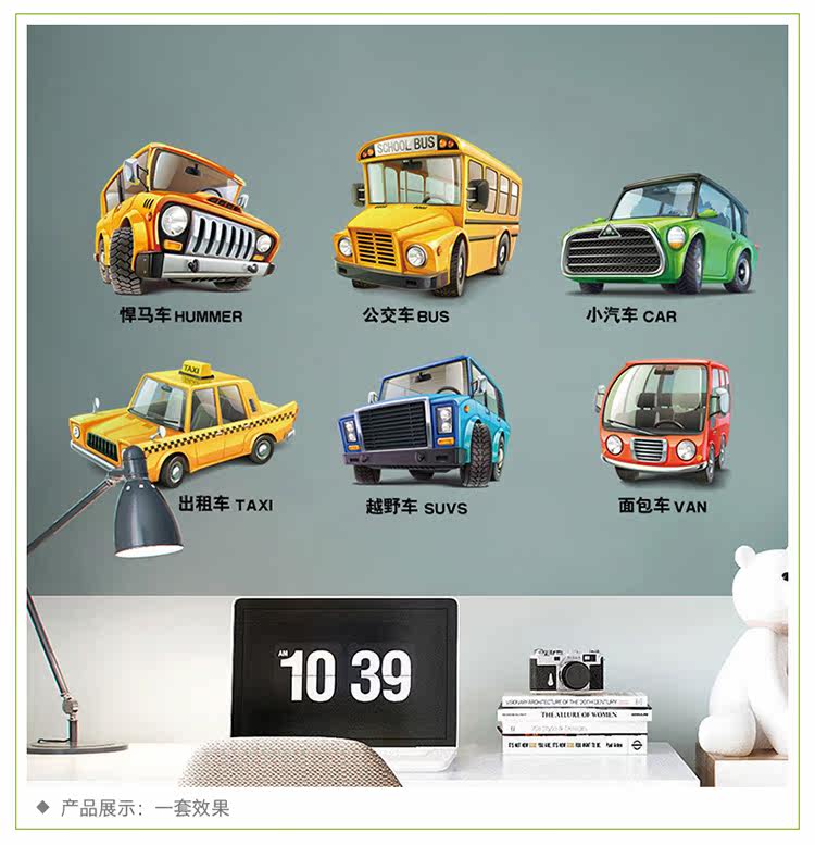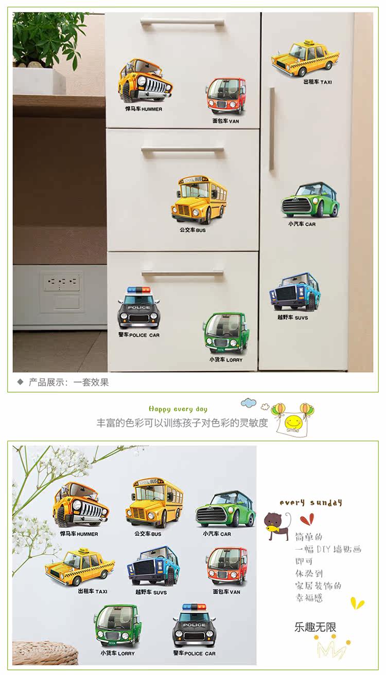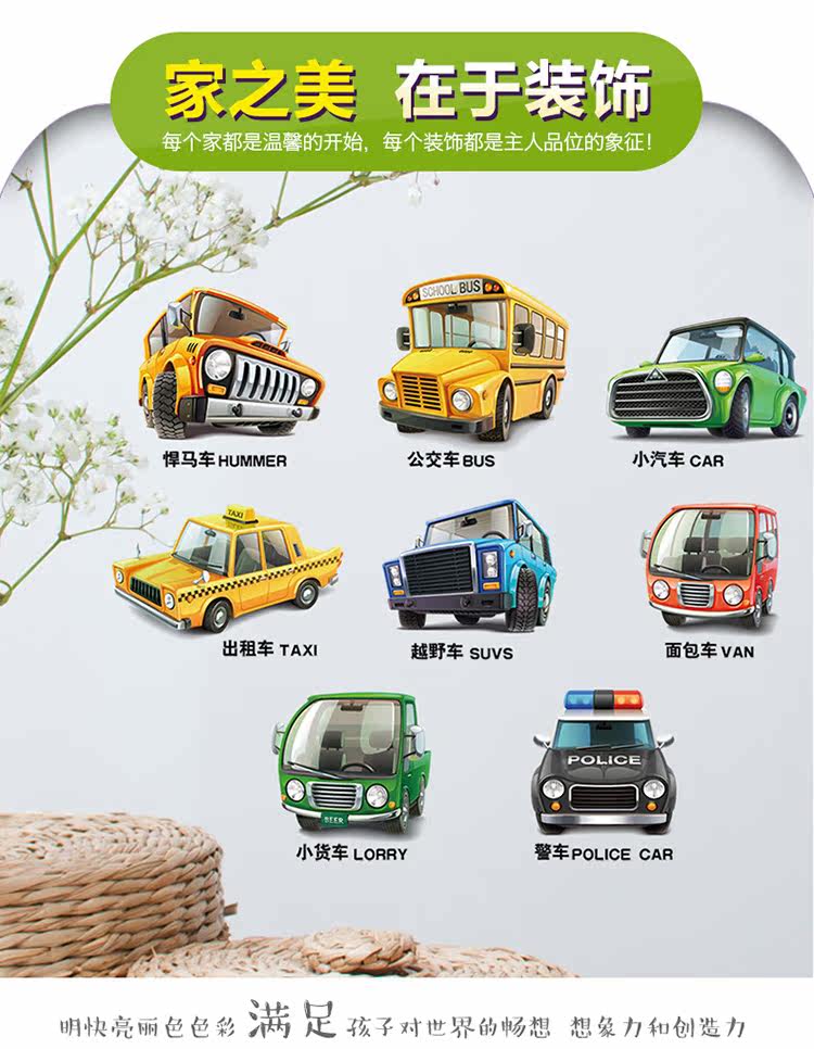 宝宝卧室卡通汽车工程车幼儿园男孩儿童房间装饰可移除墙贴纸贴画