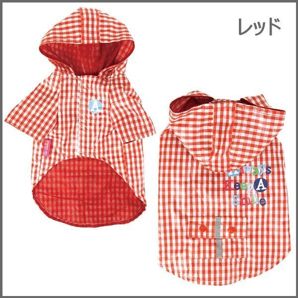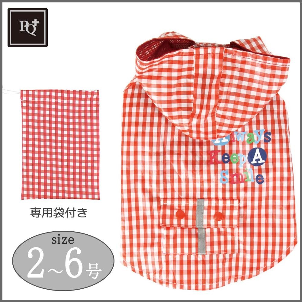撥水加工を施したペット用レインコート!!大人気のギンガムチェックがとってもキュート♪カラフルなロゴもポイントです。専用袋付き☆