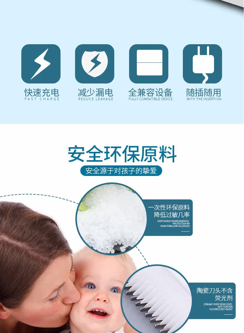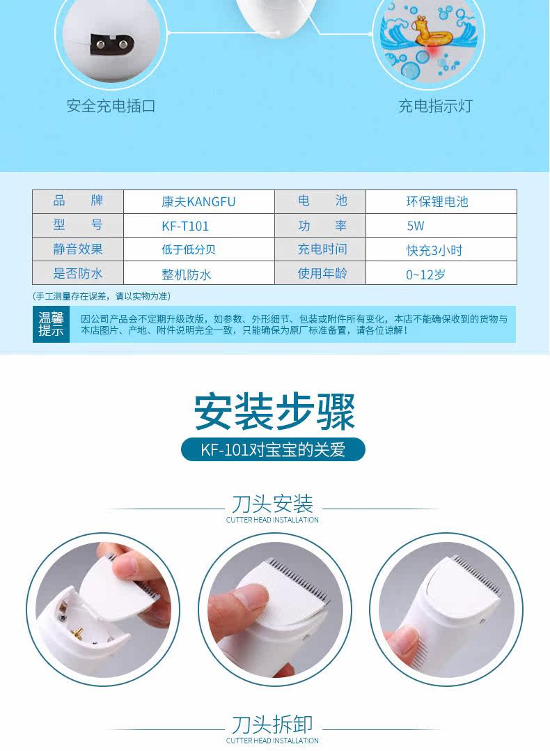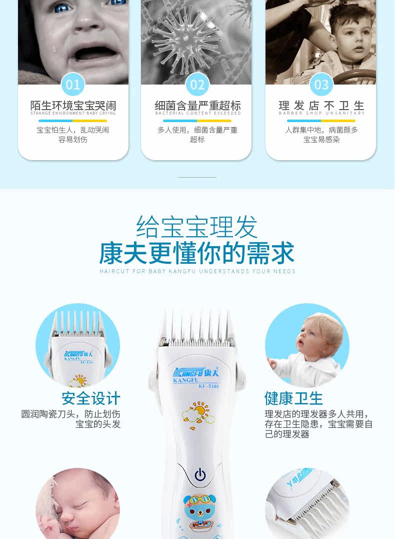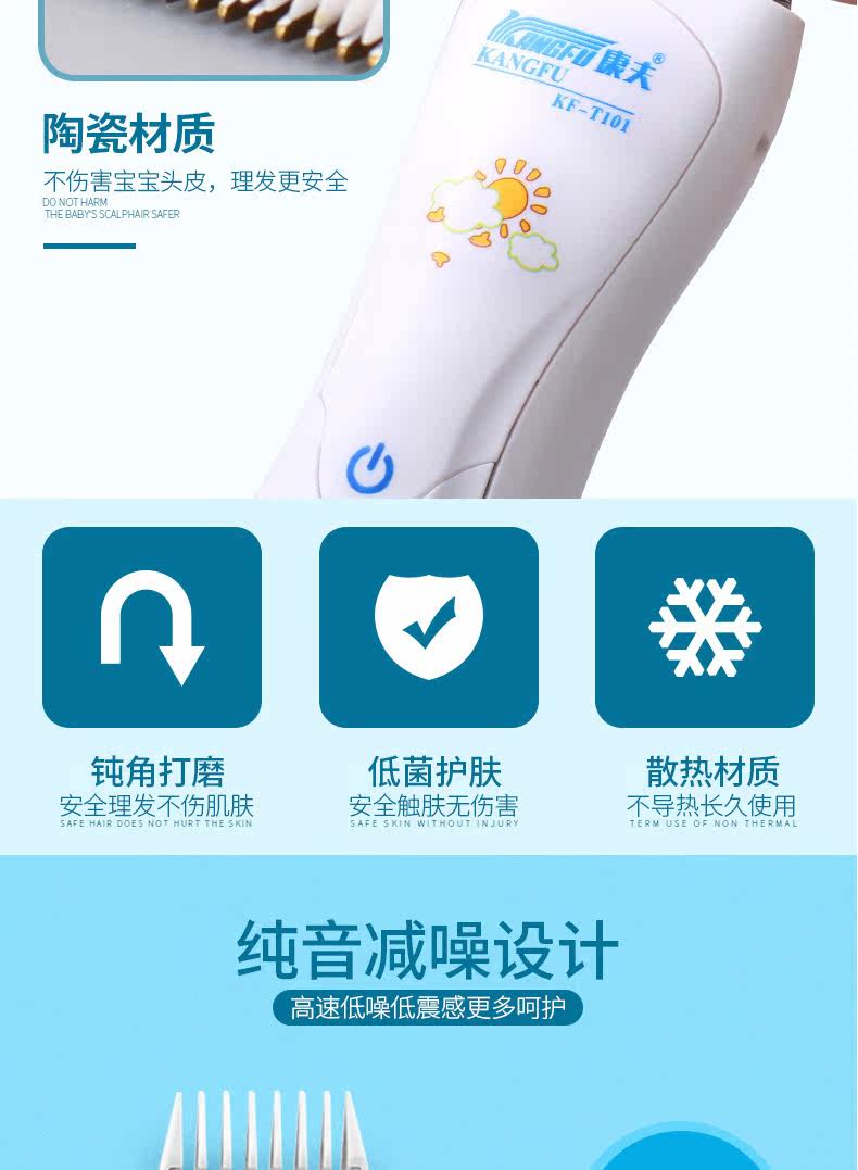 康夫婴儿理发器超静音宝宝儿童充电式防水剃头刀剪发器电推剪推子