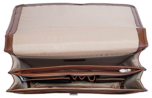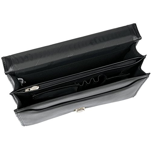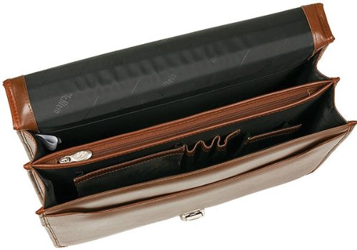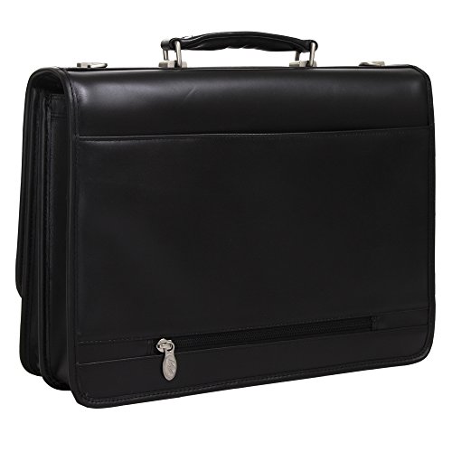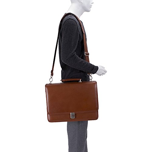 Studio : MCKLEIN USA Publisher : MCKLEIN USA Binding : Apparel Product Description McKlein USA V Series Lexington Double Compartment Leather Briefcase. The Lexington Double Compartment Leather Briefcase by McKlein features an exclusive, patented removable wheel and handle system to maximize your travel options! SmartZipper converts rear pocket to a panel that secures case to a separate wheeled case handle. More great design features: Secure key lock on front flap; Organizer section for PDA, cell phone, pens, business cards, etc. Spacious double compartment construction divided by secured zipper compartment; Rear compartment padded with high density foam protects laptops up to 17"; Non-slip, shock absorbing neoprene shoulder strap stretches for comfortable carrying; 16 1/2 x 4 1/2 x 11 1/2", 4 lbs., 6 ozs. State Color. Order yours today! McKlein USA V Series Lexington Leather Double Compartment Briefcase 0