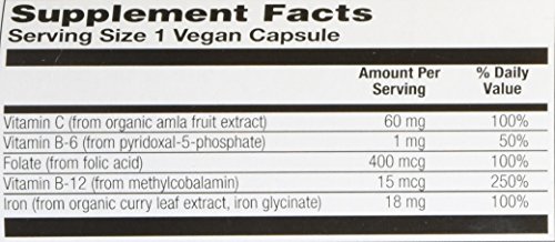 Veglife iron plus c, tummy smart vegan, veg cap 18mg 60ct contain gentle non-constipating sources of iron from curry leaves and chelated iron glycinate