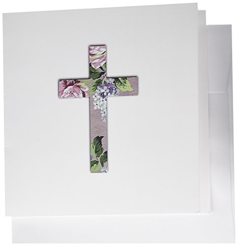 3dRose Flowery Christian Cross 6 x 6 Inches Greeting Cards, Set of 12 (gc_185479_2)