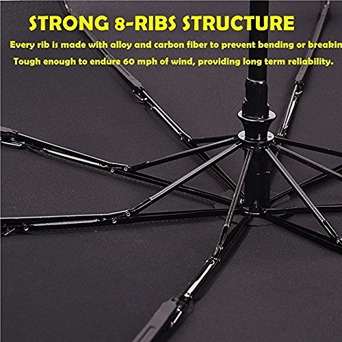 -. Feature : SUPERIOR WINDPROOF AND WATERPROOF - MUPATER umbrella is fortified with 8 fiberglass ribs to minimize the chance of turning inside out. The ribs are tough enough to endure 60 mph of wind, providing long term reliability that you can count on. MUPATER umbrella can protect you even if in a drenching downpour with a premium quality canopy which is made from 210T pongee fabric that is highly water repellent and quick drying. / HIGH QUALITY MATERIALS - The surface of the umbrella is made of ultra-high density pongee fabric with ultra bright light reflective trimming. Frame systems are made of premium fiberglass and high quality stainless steel(the best flexible material in the industry which allows to bend many times without any damage): NO rust, NO breaking! / COMPACT & LIGHTWEIGHT - This compact umbrella weighs less than 1lb, making it perfect for travel. Foldable to 11 inches, it is easy to store in backpack, briefcase, gym bag, luggage or more. This excellent umbrella is the perfect combo of portability, protection and durability. / AUTO OPEN AND CLOSE - Perfect for one handed operation. Simply OPEN or CLOSE the umbrella with a press of a button within one second. Its auto OPEN and CLOSE feature gives you quick rain and sun protection. You do not need to wait another second to open the umbrella when you get out of your car in the rain, especially in heavy rainfall, even when your hands are full of things.
