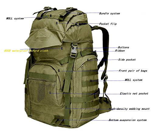 70L Military Tactical Backpack Large Army 3 Day Assault Pack Molle Backpacks Rucksacks for Outd...