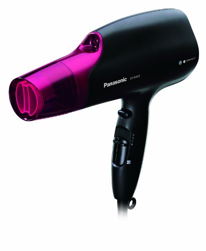 This powerful Panasonic nanoe Hair Dryer with advanced nanoe ionic hair dryer technology makes it quick and easy to dry and style hair. Unlike other ionic hair dryers and blow dryers, the 1875-Watt nanoe Panasonic hair dryer draws naturally occurring moisture from the air and transforms it into micro-size particles containing 1,000 times more moisture than regular ionic hair dryers. As you dry and style, these micro, nanoe moisture particles are infused into each hair shaft to minimize frizz and strengthen and shield hair from over-drying and damage often caused by everyday brushing after using a typical blow dryer. The result is smooth, shiny, beautiful-looking hair. This EH-NA65-K Panasonic nanoe Hair Dryer features two hair dryer professional speeds — high and low — and three temperature settings — hot, warm and cool — to accommodate different hair styles and types. This hair dryer Panasonic also includes three professional quality nanoe hair dryer- attachments for styling and touchups. The Panasonic nanoe Quick-Dry Nozzle delivers both soft and strong airflows designed for faster, more even drying. A Concentrator Nozzle focuses nanoe hair dryer airflow for targeted, precision styling and a Diffuser creates body and volume. The Panasonic nanoe hair dryer also features a cool-shot button, heavy-duty hair dryer professional 9-ft., 360° rotating power cord with a hanging loop and a removable, easy-to-clean filter.Feature