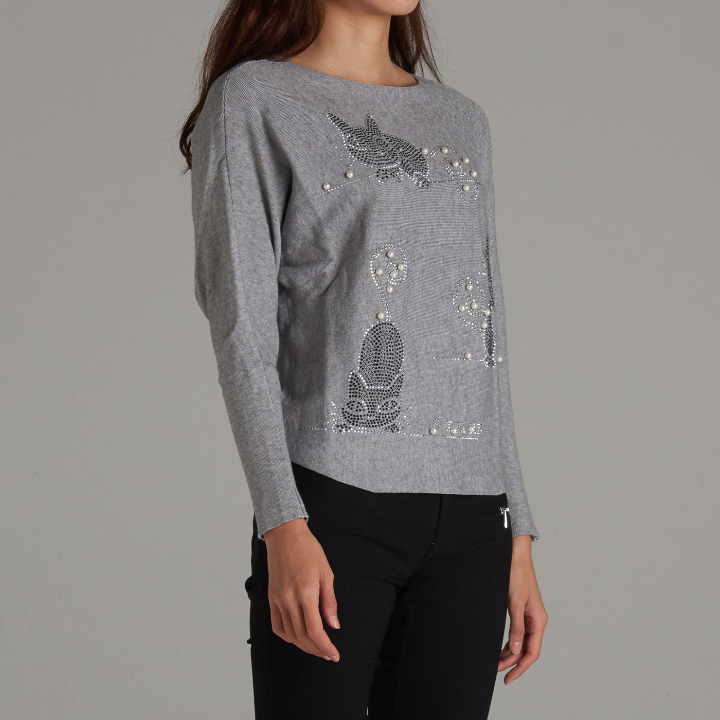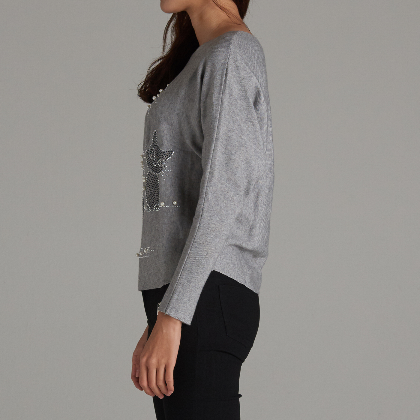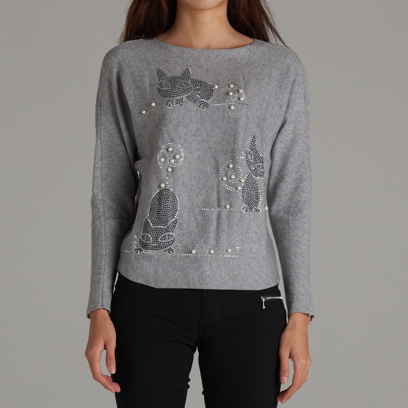 고양이 보석 패턴이 앙증맞은 니트 탑입니다.
