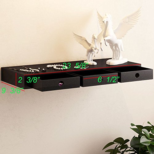 - Title : Black Floating Wall Shelf with 3 Drawers , Concealed Mounting Bracket and Hardware Included, Ships Fully Assembled