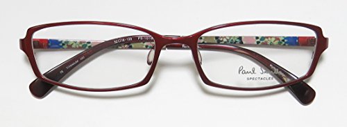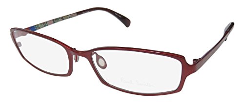 Brand: Paul Smith Style: 1016 Gender: womens Frame Type: full-rim Frame Material: titanium Case: eleganzo Size: 52-16-133 Color code: cam/2802 Frame Color: red Lens Color: demo lenses Lens Height: 28 mm The frame is fully rx-able and can be fitted with prescription and/or tinted lenses at most optical stores. Please note that factory demo lenses have a logo stamped on them in ink. This frame provides comfortable fit and flatters a variety of face shapes. The hardware parts of the eyeglasses are made of titanium. This material is known for it's durability, light weight and corrosion resistance. This metal is also hypoallergenic. It is recommended by eye doctors for people with sensitive skin who otherwise might be allergic to standard stainless steel metal frames. Please keep in mind that original case is not included with this frame. However, we will include an Eleganzo hard case at no extra charge to keep your eyeglasses protected. The glasses are made in Japan. These eyeglasses retail for $340.00 at upscale stores that carry designer frames. Save your money and get them here! The pictures cannot fully reflect the beauty of this piece of designer eyewear. These eyeglasses look even more elegant in real life. 0 |