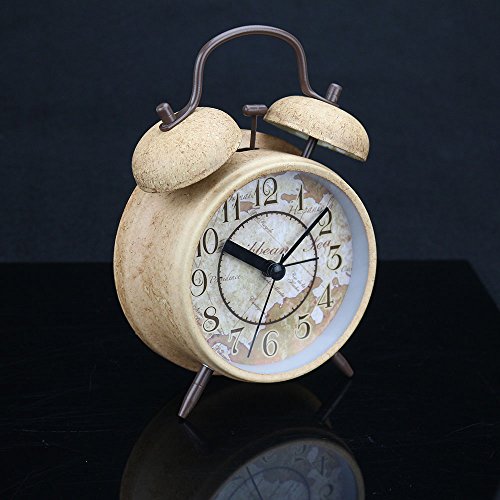 ANG ANG® 4" Silent Quartz Analog Quiet Non-ticking Retro Vintage Classic Bedside Twin Bell Alarm Clock with Loud Alarm and Nightlight