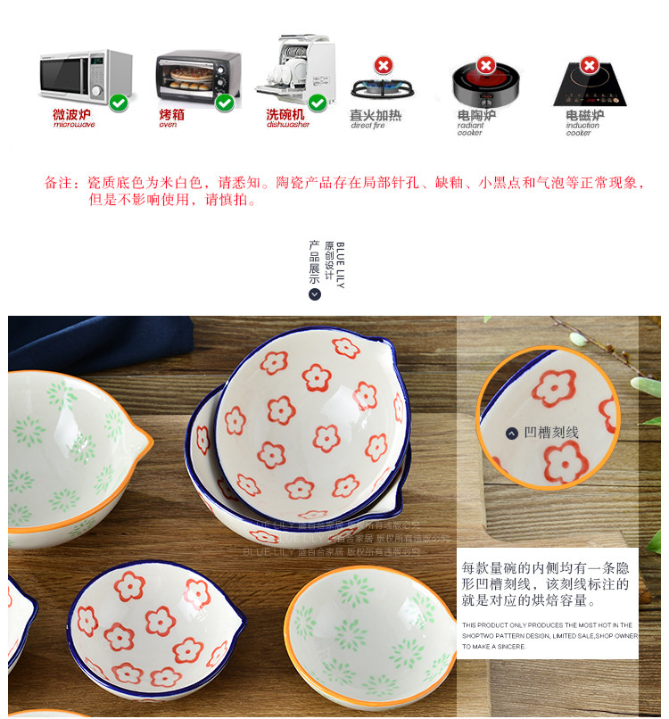 注意:每款产品左右都会有2条隐形的凹线,是量碗对应的刻度值线,非瑕疵,请知悉。