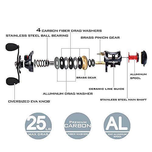 -. Title : KastKing Spartacus Maximus Metal Baitcasting Fishing Reel – Saltwater Baitcaster- 10 + 1 Shielded Stainless Bearings - 25 LB Carbon Fiber Drag - Zero Flex Aluminum Alloy Construction