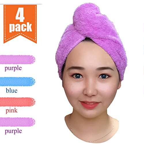 Hair Towel - 4 PACK Microfiber hair drying towels Turbans Wrap Fast Dry Hair Cap Wrap Super Absorbent Twist Towel With Elastic Loop