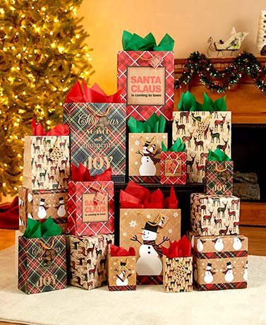 Studio : Holiday Savings Publisher : Holiday Savings Binding : Health and Beauty Product Description The value set includes bags, wrap and tissue paper for all of your wrapping needs. The bags and wrap feature a festive plaid design decorated with seasonal art and sentiments. Each bag has a tag. Tissue paper comes in classic, coordinating colors. Value set with everything you need 28-Pc. set includes: 4 Small bags, 4-1/2"W x 2-1/2"D x 5-3/4"H, each 4 Medium bags, 7"W x 4"D x 9"H, each 4 Large bags, 10-3/8"W x 5-3/8"D x 12-7/8"H, each 12 Sheets of tissue paper, 20" sq., each 6 Green 6 Red 4 Sheets of flat wrap, 19-1/2" x 27-1/2", each 0