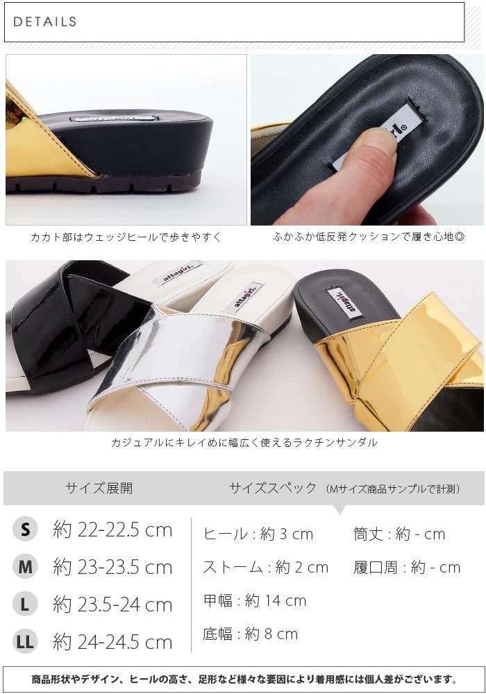 | サイズ | Sサイズ(22.0~22.5cm) Mサイズ(23.0~23.5cm) Lサイズ(23.5~24.0cm) LLサイズ(24.0~24.5cm) |