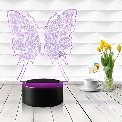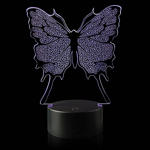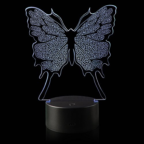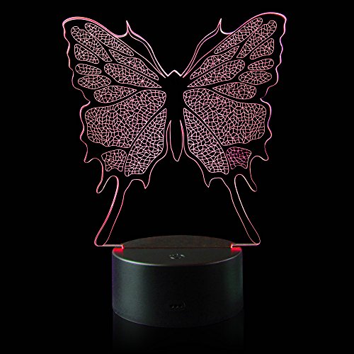 3D Illusion Butterfly Night Light Lamp with 7 Color change, touch base, power by AA batteries