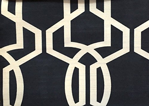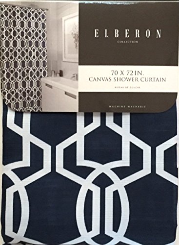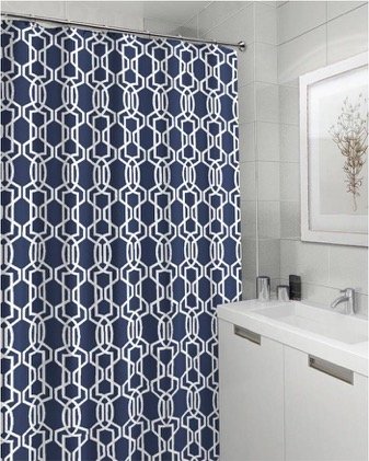 Emporia Navy Blue White Canvas Fabric Shower Curtain: Geometric Lattice Design, 70 by 72 inches