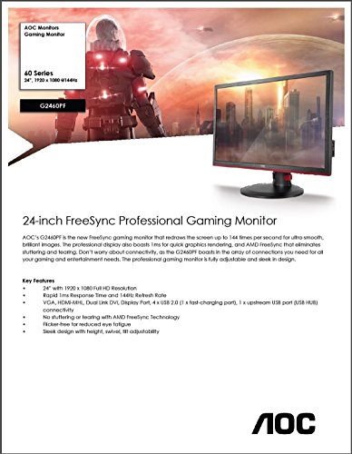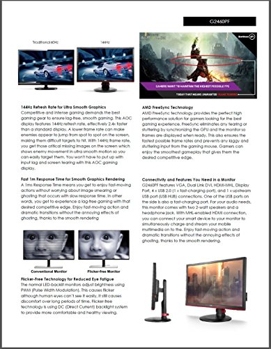-. Title : AOC G2460PF 24-Inch Free Sync Gaming LED Monitor, Full HD (1920 x 1080), 144hz, 1ms