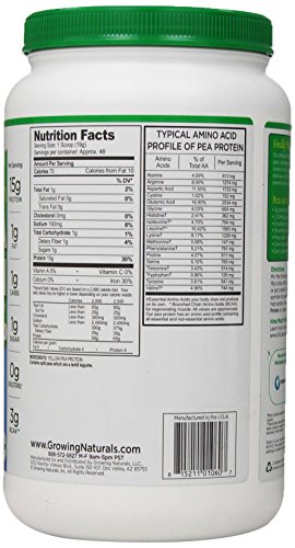 The first raw USA and Canadian grown yellow peas, are synergistically combined with Growing Natural's patented water extraction process. This delicious, light colored Yellow Raw Pea Protein is packed with powerful essential amino acids.