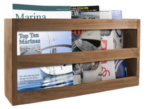 SeaTeak 62508 Double-Wide Teak Magazine Rack, Wall Mount or Free Standing