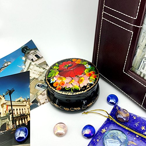 Each box is crafted and professionally hand painted in an ancient, traditional manner named Petrykivka.