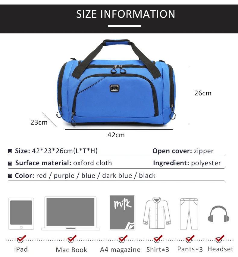 Suitable for :Outdoor Sports Gym Bag Travel Handbag