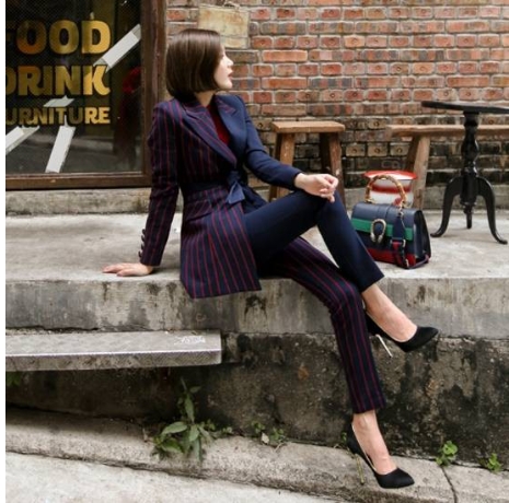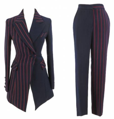 斬新なデザインの、ストライプスーツです。